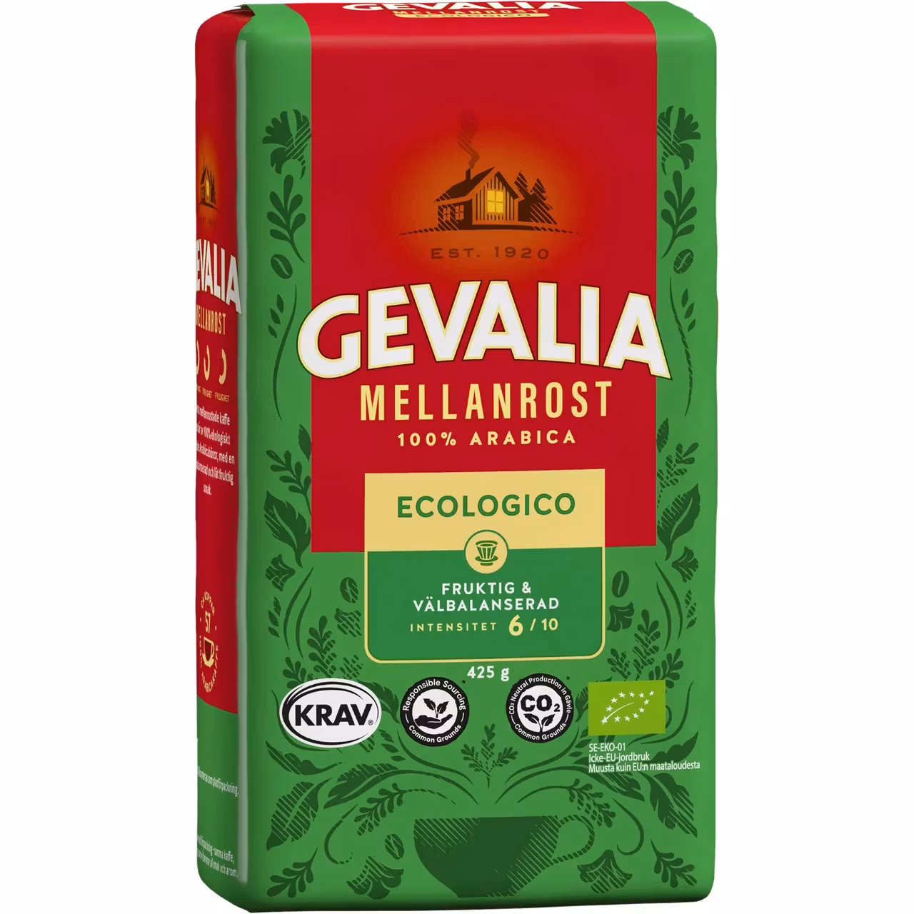 Gevalia Ekologiskt mellanrostade kaffe för brygg består av 100% ekologiskt odlade Arabicabönor, med en välbanserad och lätt fruktig smak. För att verka för hållbar utveckling i kaffeodlande regioner, har Gevalia valt att arbeta med två oberoende organisationer, KRAV och den ideella organisationen UTZ.