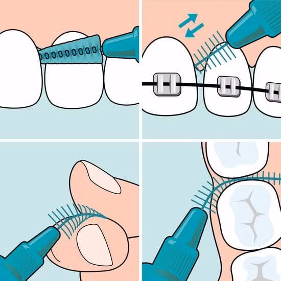 Använd dagligen, byt ut när borsten är sliten. Tvinga aldrig in borsten i mellanrummet.